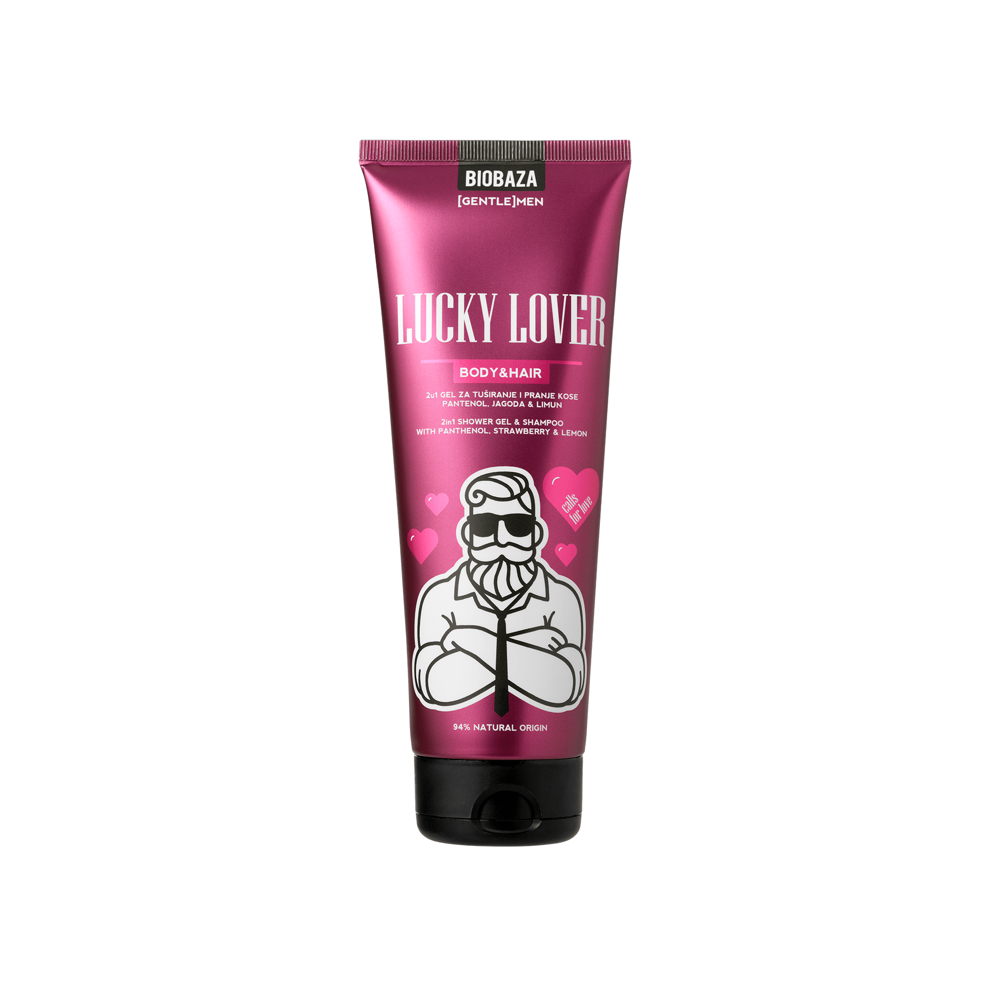 BIOBAZA GENTLE[MEN] LUCKY LOVER 2u1 GEL ZA TUŠIRANJE I PRANJE KOSE svojom bogatom, njegujućom formulacijom u trenu osvježava tijelo i kosu, a pritom zavodi sva osjetila vibrantnim, razigranim mirisom. Za hidrataciju kože, ali i sjaj kose te svilenu mekoću, zaduženi su birani humektansi, aloe vera i protein slatkog badema. Za mirisni užitak je koktel sastojaka afrodizijačkog djelovanja – jagoda, limuna, bosiljka i vanilije. Ljubav na prvo tuširanje? O, da – uz Lucky Lovera je neizbježna!