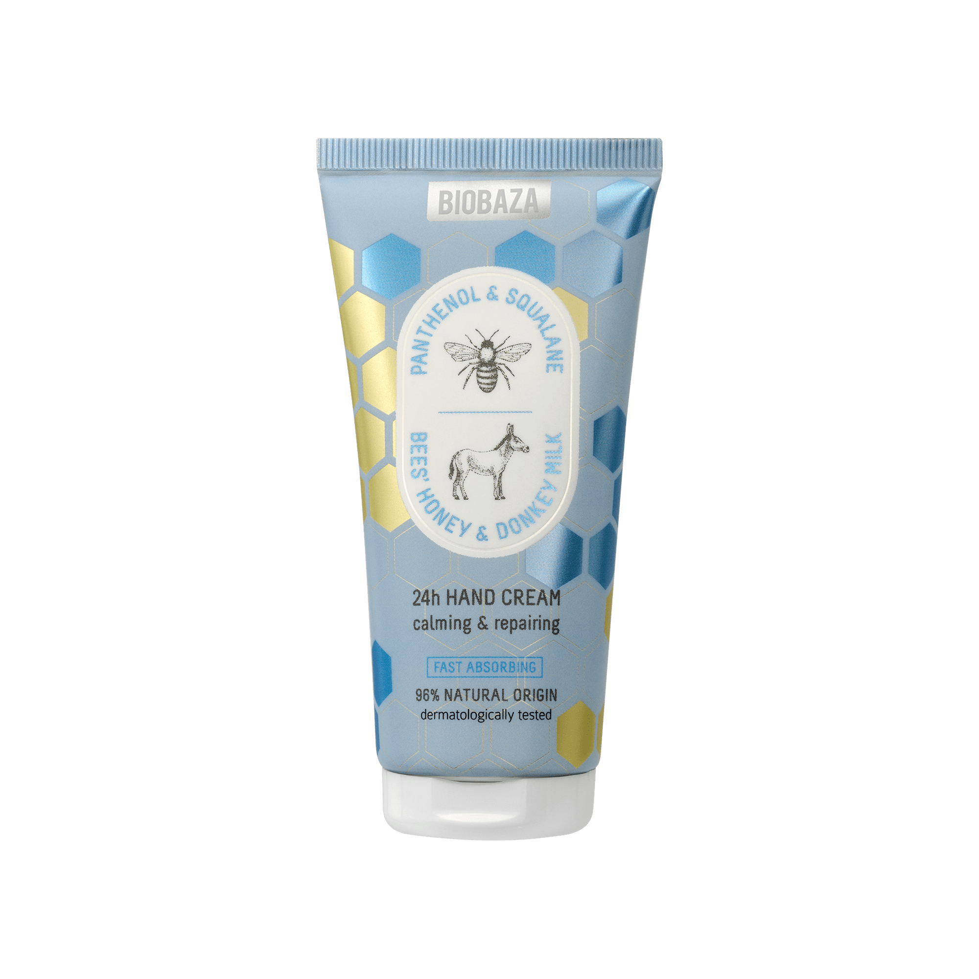 BIOBAZA MED & MAGAREĆE MLIJEKO KREMA ZA RUKE bogate teksture u trenu pruža olakšanje i oporavak suhoj, beživotnoj koži ruku. Koktel biranih prirodnih sastojaka – ekstrakata meda, magarećeg mlijeka i kamilice – umiruje, potiče regeneraciju i pruža osjećaj ugode, dok humektanti osiguravaju učinkovitu, dugotrajnu hidrataciju. Snažna hranjiva njega dolazi iz bademovog ulja i karite maslaca, koji koži vraćaju mekoću, elastičnost i prirodan sjaj.
